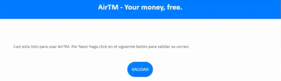Paso 2: Entra a tu correo electrónico y busca un mensaje de verificación de AirTM luego haz clic en validar.